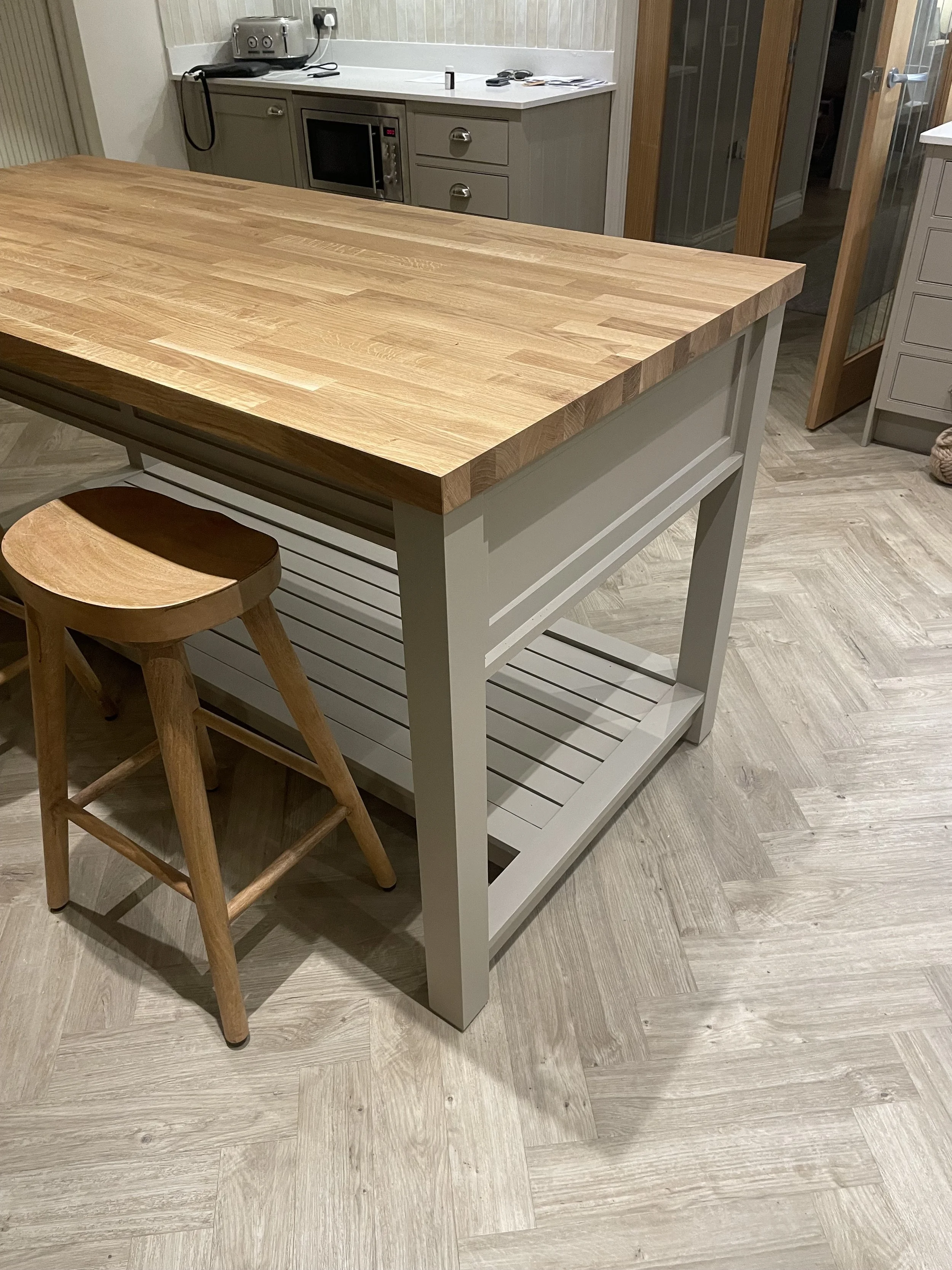 Thanks so much to our lovely customers on Mersea Island. For ordering this Island. And for being a joy to work for. Painted in ‘Rolling Fog’ The Little Greene Paint Company. Constructed completely from Solid wood, we think it looks great.